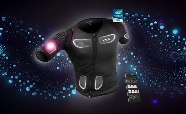 وتم الكشف عن قميص OWO Haptic في معرض الإلكترونيات الاستهلاكية هذا العام كوسيلة لجعل الألعاب غامرة أكثر. وإذا ارتديت القميص لن ترى وتسمع اللعبة فحسب، بل ستختبرها من خلال حاسة اللمس أيضاً. ويساعد تصميم القميص وتطبيقه في ترجمة مكتبة كاملة من الألعاب إلى أحاسيس مختلفة.