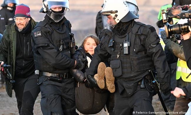 حملت الشرطة الألمانية ناشطة المناخ السويدية غريتا تونبرغ مع عدد من المتظاهرين بعيدا عن حافة منجم غارتسفايلر المفتوح لتعدين الفحم البني.