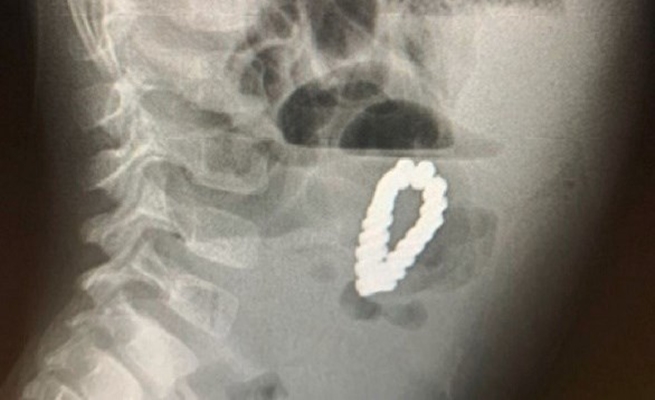 ورغم إزالة الزائدة الدودية استمرت آلام الطفل، وعندما أجرى الأطباء عمليات المسح، كانوا مندهشين لرؤية شيء على شكل سوار داخل بطن الطفل، وكان والداه مرتبكين بنفس القدر.