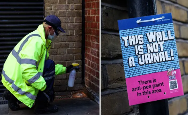 يختبر حيّ سوهو اللندني النابض بحياة الليل والسهر طريقة جديدة لمعالجة مشكلة مزمنة يعانيها هي تبول الرجال في الشوارع، ويتمثل العلاج المبتكر في حماية الجدران بطلاء غريب “مضاد للبول”.