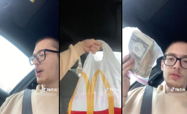 طلب وجبة نقانق .. ” ماكدونالدز ” تفاجئ أحد زبائنها بكيس يفيض دولارات ! ( فيديو )