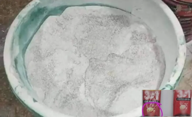 وتبين من الفيديو أن المصنع يقوم بإنتاج مشروب قهوة شهير من بودرة البلاط والأسمنت الأبيض، كما أنه يقوم بتزوير علامات تجارية لشركات كبرى لإنتاج الشاي والقهوة والحلويات.