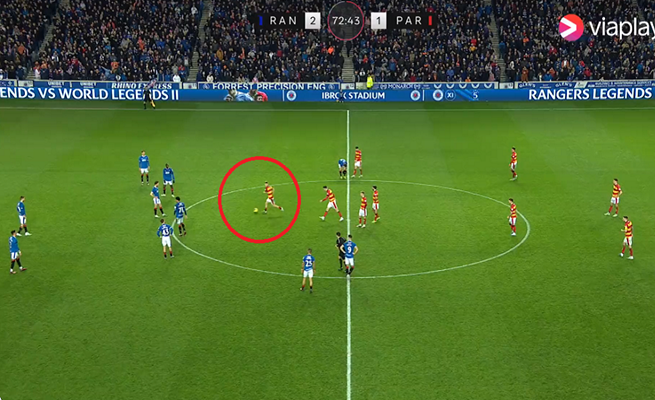 وتلقى لاعب فريق غلاسكو رينجرز، مالك تيلمان، إصابة في الدقيقة 70، ليخرج لاعبو الفريق الضيف الكرة خارج أرضية الملعب لعلاج لاعب الخصم.