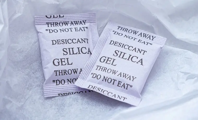 هذه الأكياس تحتوي على جل أو هلام السيليكا، وهي مادة تساعد في امتصاص الرطوبة، وبالتالي تجنب تكون العفن والروائح الكريهة وإتلاف المنتجات.