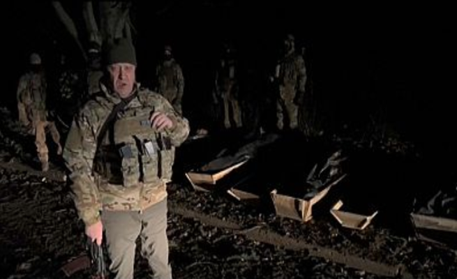 وظهر في الفيديو رئيس مجموعة فاغنر يفغيني بريغوزين بالقرب من التوابيت، وهو عادة ما ينشر مقاطع له متوجهاً في حديث إلى الرئيس الأوكراني فولوديمير زيلينسكي.