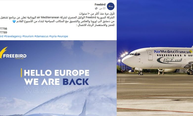 وبحسب بعض المصادر الموالية الناشرة للخبر، فقد ذكر اسم شركة “Freebird” السورية على أنها وكيل الشركة اليونانية في سوريا، وبعد أن كان الخبر متعلقاً بتسيير رحلات هي الأولى من نوعها لشركة أوروبية، أصبح على الشكل التالي: “فري بيرد أصبحت الشركة السورية الأولى منذ اكثر من عقد من الزمن تحلق فوق سماء أوروبا”.