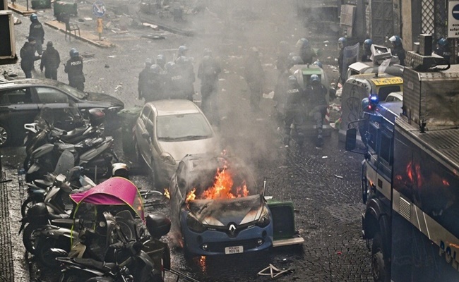 وأوضحت أن الوضع بات متدهورا في مدينة نابولي، خاصة أن الفيديوهات الخاصة بالاشتباكات أظهرت تدمير مقاهي كاملة، بالإضافة إلى استخدام مجموعة كبيرة من الألعاب النارية.