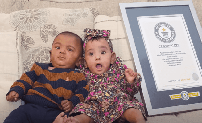ودخل الاثنان موسوعة غينيس للأرقام القياسية باعتبارهما التوأم الأخف وزنا المولودين قبل الأوان.