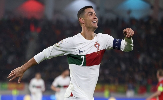 واتجه إلى الراية الركنية وهو يحيي الجماهير، قبل أن يقفز على طريقة رونالدو الاحتفالية، ليصرخ الحاضرون معه بصوت مرتفع “سي”.