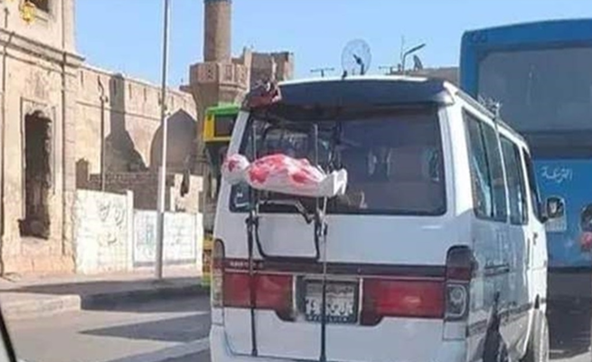 تداول رواد مواقع التواصل الاجتماعي في مصر صورة مفزعة لحافلة صغيرة وفي خلفها كفن أبيض وكأن بداخله طفلا.
