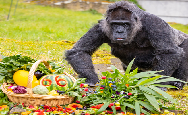 وقدمت حديقة حيوانات برلين حيث تقطن “فاطو” سلة من الفاكهة والخضار للغوريلا المسنة للاحتفال بهذه المناسبة.