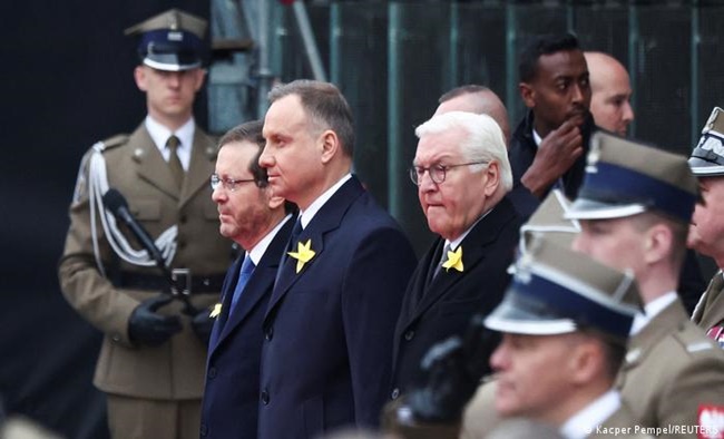 وظهر شتاينماير برفقة نظيريه الإسرائيلي إسحق هرتسوغ والبولندي أندريه دودا أمام النصب الواقع في قلب هذا الحي القديم مقابل متحف بولين لتاريخ يهود بولندا، على أن يزوروا معا بعد الظهر كنيسا في وارسو.