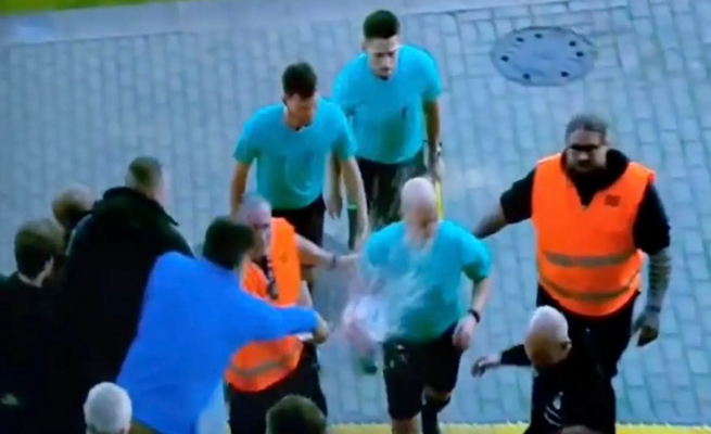 انتظر المراقبون قبل مغادرة الملعب. أظهر تلفزيون ”ماجنتا سبورت تي في” مشجعا يلقي الجعة على وجه الحكم.