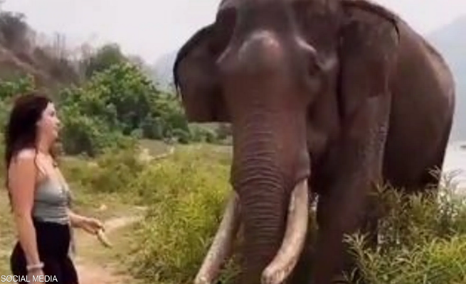 وأظهرت لقطات فيديو أن المرأة قرّبت قرن الموز من فم الفيل العملاق، وكانت الابتسامة تعلو وجهها دون أن تدري ماذا ينتظرها، وسُمعت وهي تقول: “ما أروعه”.