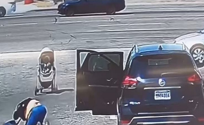 ويكشف الفيديو أن المرأة نزلت من سيارتها ووضعت الطفل في عربة أطفال صغيرة لتصطحبه معها، لكن الهواء حرك العربة من مكانها.