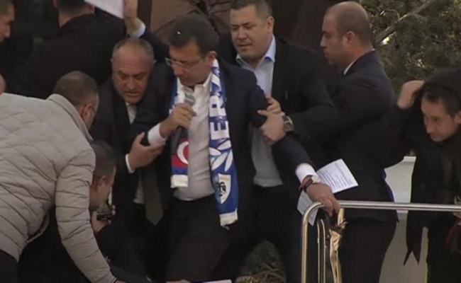 وقال رئيس بلدية إسطنبول أكرم إمام أوغلو من حزب الشعب الجمهوري المعارض الرئيسي مساء، الأحد، إن مجموعة من الأشخاص رشقوه بالحجارة بعد الظهر بينما كان يلقي خطابا من سطح حافلة خاصة بحملته الانتخابية .