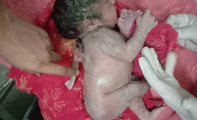 وُلد رضيع في مستشفى بولاية راجستان بشمال الهند، بثلاث أيادي، في ظاهرة طبية نادرة للغاية.