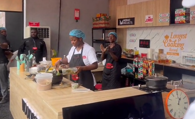 واصلت طاهية نيجيرية، الإثنين، سعيها لتحقيق رقم قياسي عالمي جديد لأطول ساعات طهي بدون توقف بالطهي لنحو 100 ساعة، متجاوزة الرقم القياسي الحالي.