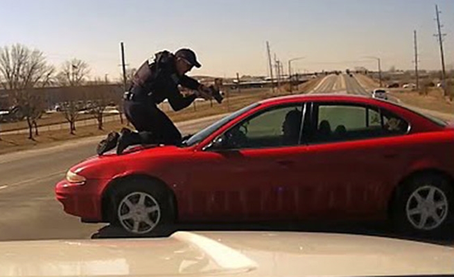 انتشر مقطع فيديو أظهر ضابط شرطة في ولاية آيوا الأميركية وهو يتشبث بسقف سيارة رجل، بينما كانت تسير بسرعة تصل إلى 80 كيلومتراً في الساعة، بحسب ما نقلت صحيفة The Independent البريطانية أمس السبت.