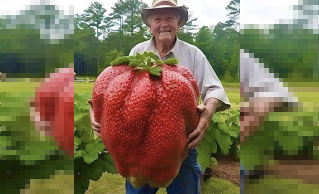 وظهر في الصورة رجل يحمل ما يبدو أنها ثمرة فراولة ضخمة، مع تعليقات مرافقة بأنها الأكبر في العالم، كما حصدت الصورة عشرات آلاف المشاركات والتعليقات على مواقع التواصل.