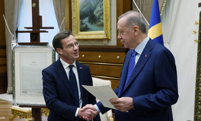 وأفاد أردوغان: “لا يمكننا الموافقة على عضوية السويد (في الناتو) قبل إيجاد حل لمسألة مكافحة الإرهاب”.