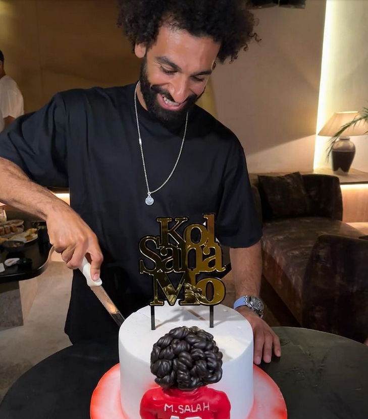 ونشر صلاح عبر حسابه في موقع “إنستغرام” صورتين من الاحتفال، الأولى يظهر فيها برفقة زملائه في منتخب مصر والثانية وهو يقطع كعكة عيد ميلاده.