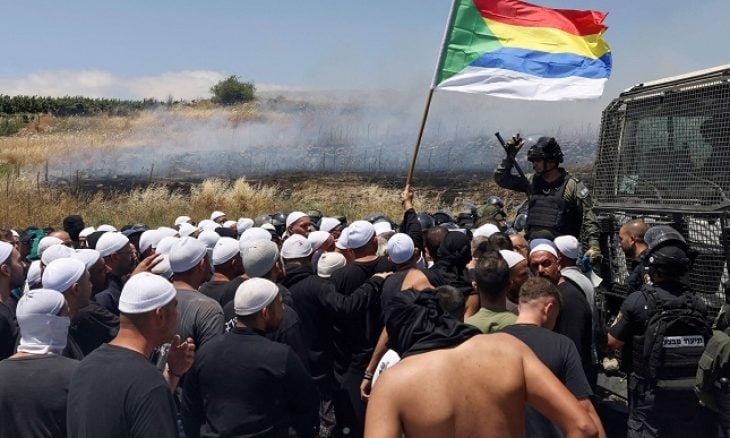 وقالت الشرطة الإسرائيلية، إن “آلاف الدروز بدأوا أعمال شغب، منها إلقاء الحجارة والمفرقعات وإلقاء زجاجات حارقة على قوات الشرطة العاملة هناك، وتعريض حياة رجال الشرطة للخطر”.