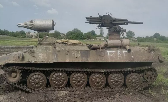 أثارت مدرّعة سوفياتية الصنع يستخدمها الجيش الروسي في أوكرانيا وأُضيف إليها سلاحان جديدان بطريقة هاوية، استغراباً كبيراً لدى المعلقين الذي يتابعون مجريات الحرب.