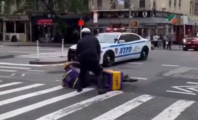 خلال مرور موكب بايدن .. شرطي يعتدي على عامل توصيل ( فيديو )