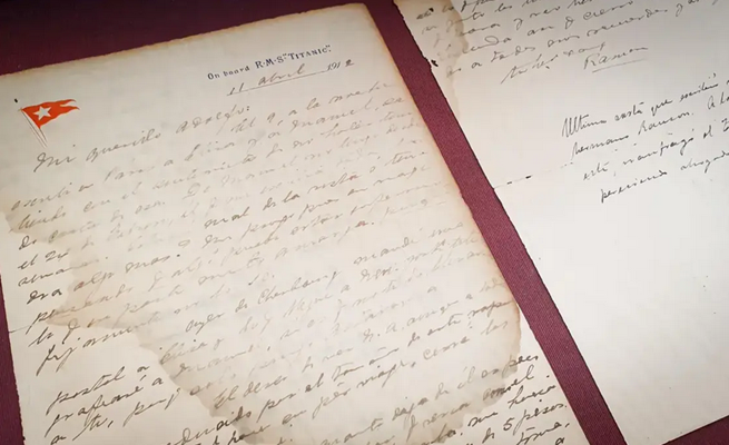 وبحسب موقع “efe.com” فإن الرسالة المؤرخة في 11 أبريل 1912 كتبها رامون أرطاجافيتيا غوميز الأوروغواياني إلى شقيقه. تم إرسالها من أيرلندا، حيث كانت محطة تيتانيك الأخيرة قبل عبورها المحيط الأطلسي ووقوع المأساة.
