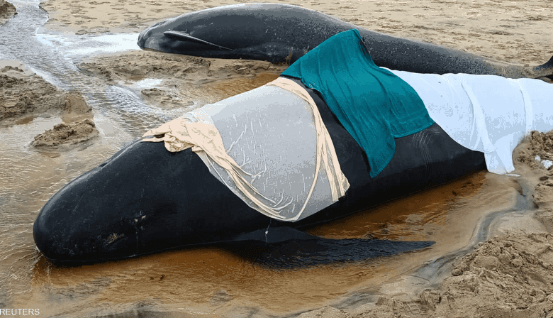 بي بي سي : تشتهر بالروابط الاجتماعية القوية .. نفوق 55 حوتا بعد جنوحها على شاطئ في اسكتلندا