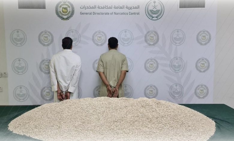 وقال المتحدث الرسمي للمديرية العامة لمكافحة المخدرات، الرائد مروان الحازمي، في تصريح أوردته وكالة الأنباء السعودية (واس)، الأربعاء، إنه تم القبض على مروجي المخدرات وهما مقيمان من الجنسيتين الأردنية والسورية.