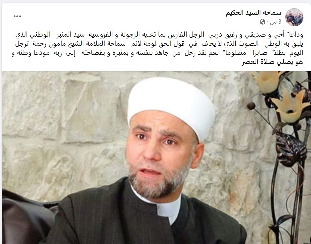 نعت مصادر إعلامية موالية “الشيخ مأمون رحمة” خطيب الجامع الأموي السابق في دمشق.