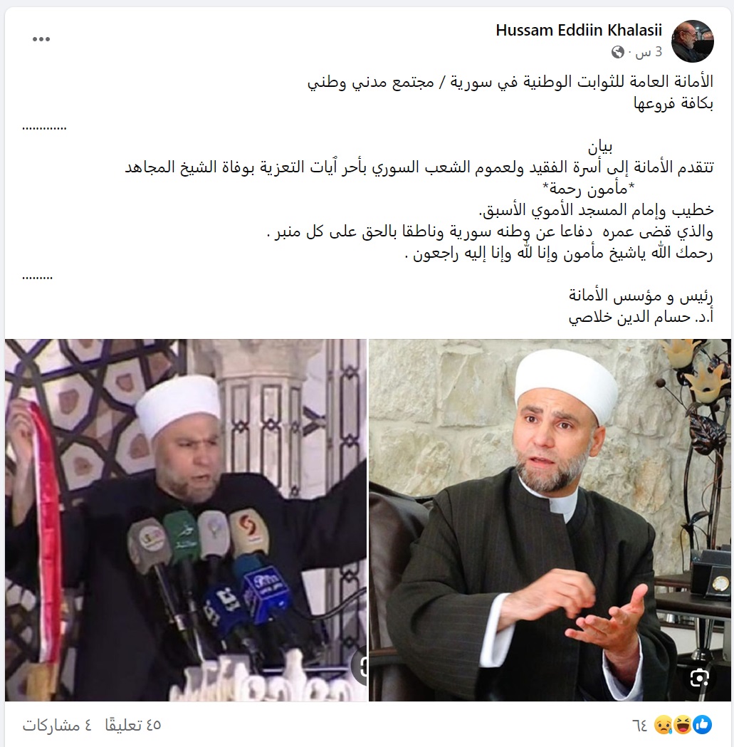 حول المنبر لمنصة تشبيح غير مسبوقة .. أنباء عن وفاة خطيب الجامع الأموي السابق