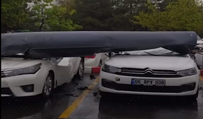 تركيا : على نحو مفاجئ .. سقوط جزء من طائرة حربية على سيارات متوقفة في أنقرة ! ( فيديو )