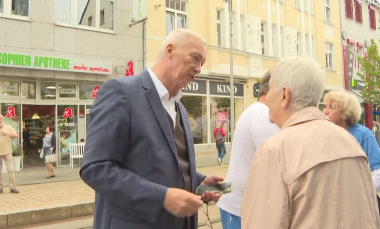 يستقبل يورغ بروفيت، مرشّح حزب “البديل من أجل ألمانيا” اليميني المتطرف، لرئاسة بلدية نوردهاوزن في ولاية تورينغن الواقعة في ألمانيا الشرقية سابقا، الناخبين عند منصة حملته بابتسامة عريضة.