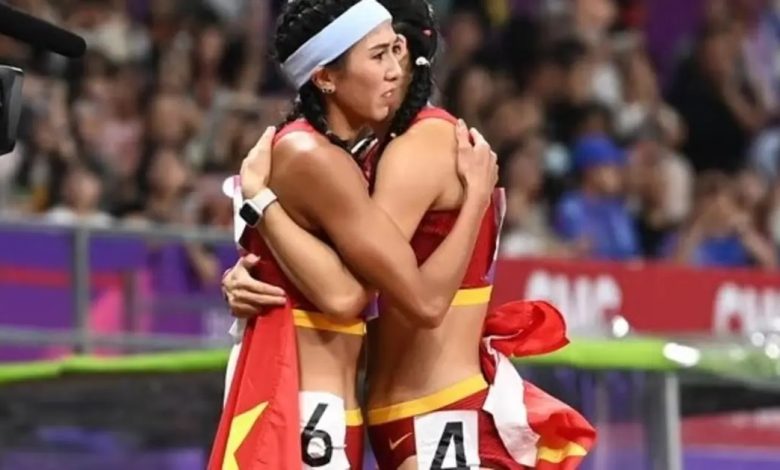 مجرد صورة وثقت لحظة عناق بين العداءتين الصينيتين لين يووي ووو ياني، أثارت بلبلة على مواقع التواصل في الصين.