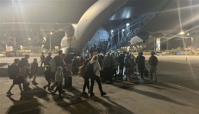 هبطت طائرة نقل عسكري ألمانية، تقل على متنها 51 راكبا في ألمانيا في الساعات الأولى من صباح اليوم الأحد، وفقا لما ذكرته وزارة الدفاع في برلين، في الوقت الذي تسارع فيه الدول إلى نقل رعاياها إلى مكان آمن في أعقاب الهجمات التي نفذتها حركة حماس قبل أسبوع.