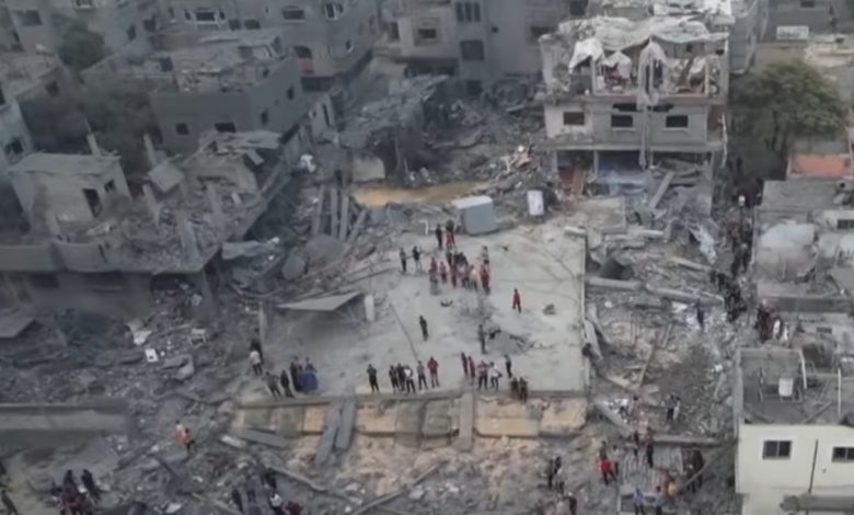 مشاهد جوية تبين حجم الدمار المرعب في دير البلح وسط غزة ( فيديو )
