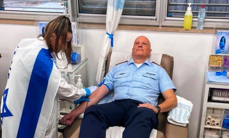 تبرع قائد القوات الجوية الألمانية إنغو جيرهارز، بالدم خلال زيارة تضامن مع إسرائيل.