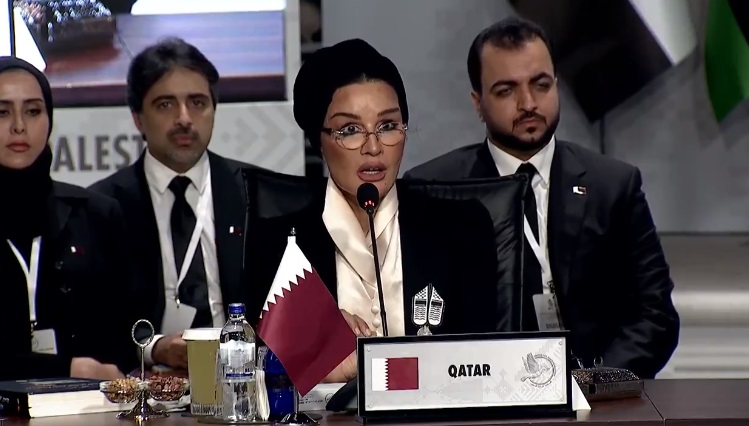 جاء ذلك في كلمة ألقتها الشيخة موزا بجلسة تحت شعار ” قلب واحد من أجل فلسطين”، نظمتها أمينة اردوغان زوجة الرئيس التركي، رجب طيب أردوغان في مدينة إسطنبول، حيث قالت: “لقد عايشنا طوال عقود كيف سوّقت إسرائيل سرديات تاريخية ملفَّقة وسيطرت هذه السرديّات على العقلِ الجماعي العالمي. إنَّ العالم كله مطالب بأن يراجع قبوله لهذهِ السردياتِ التي أُمليت عليه لعقود عديدة. كما يتوجب على العالم الإسلامي أن يقدّم سرديتَهُ المضادة ويسعى بمختلفِ الوسائل الإعلامية والفكرية والثقافية والرسمية، إلى نشرها، وتصديرها إلى الوعي الجمعي للأجيال الجديدة”.