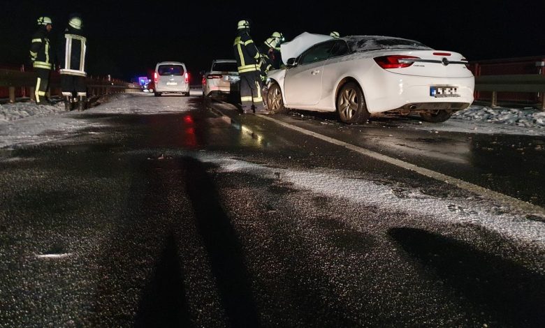 وبعد فترة وجيزة، تكدست عشر سيارات على جسر بالقرب من جونزنهاوزن بعد أن فقد سائق السيطرة على سيارته بسبب الجليد الزلق، حسبما ذكرت الشرطة.