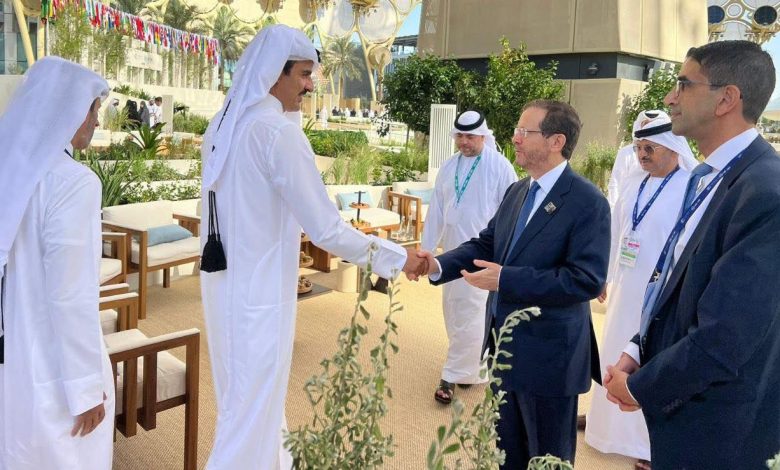 قال مكتب الرئيس الإسرائيلي إسحق هرتسوغ اليوم الجمعة، إنه تحدث مع أمير قطر الشيخ تميم بن حمد آل ثاني، وتصافحا خلال مؤتمر الأمم المتحدة المعني بتغير المناخ (كوب 28) المنعقد في دبي.
