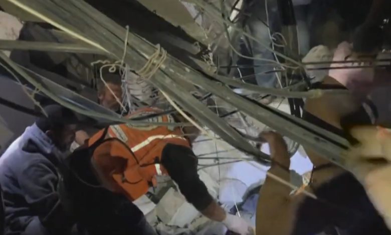 يقوم السكان في خان يونس في قطاع غزة بمحاولة البحث عن ناجين وانتشال جثث القتلى بعد غارة إسرائيلية استهدفت حيا سكنيا.