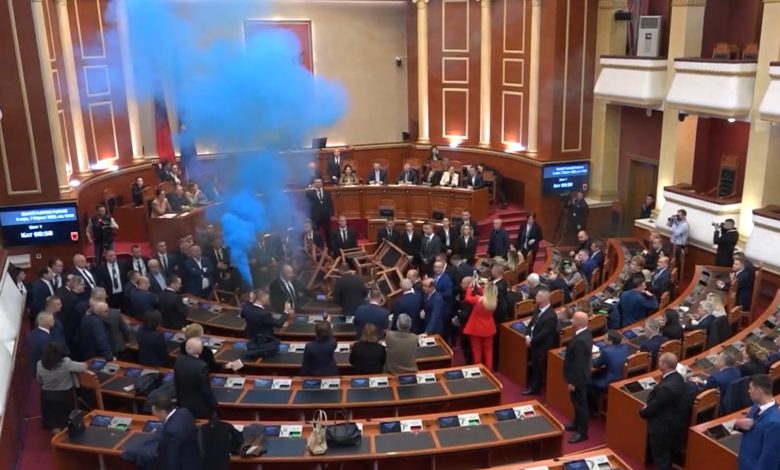 قامت المعارضة الألبانية بالاحتجاج بالمشاعل والكراسي والضوضاء، خلال جلسة إقرار البرلمان الميزانية السنوية لعام 2024 يوم الخميس.