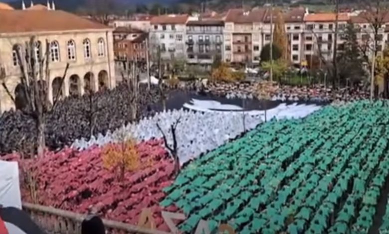 إسبانيا : غرنيكا التي قصفها النازيون والفاشيون في1937 ترسم علم فلسطين بتجمع بشري ضخم ( فيديو )