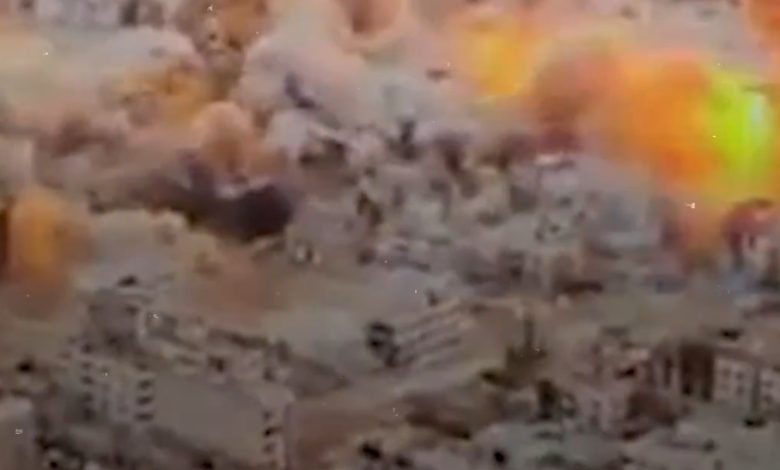 تفجير مرعب ينسف مربعاً سكنياً بالكامل في حي الرمال بغزة .. والمتحدث باسم الجيش الإسرائيلي يقول إنه لمسؤولين في حركة حماس