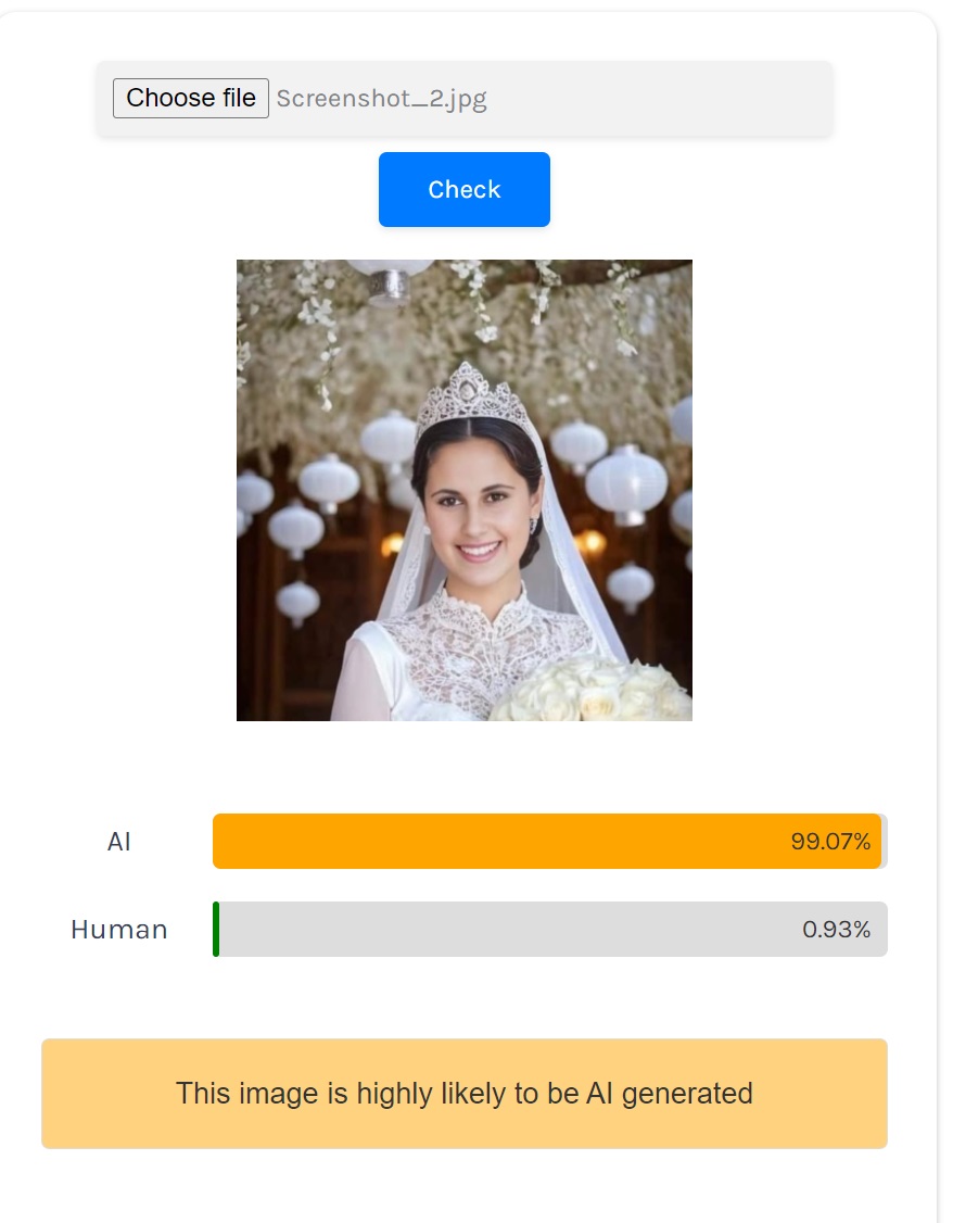 وبحث عكس السير عن الصور المرفقة بالخبر ليتبين أن صورة زين غير صحيحة ومختلقة عبر تقنيات الذكاء الاصطناعي، أما صورة بشار الأسد وابن آصف شوكت فسبق وأن نشرتها حسابات موالية عبر إنستغرام، دون أن يكون لها علاقة بالزفاف المزعوم.