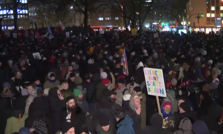 واندلعت المظاهرة بعد تحقيق نشره موقع “كوريكتيف” (Correctiv) للصحافة الاستقصائية في ألمانيا، الأربعاء، كشف فيه عن اجتماع بين المتطرفين اليمينيين ومسؤولي “حزب البديل من أجل ألمانيا” في بوتسدام.