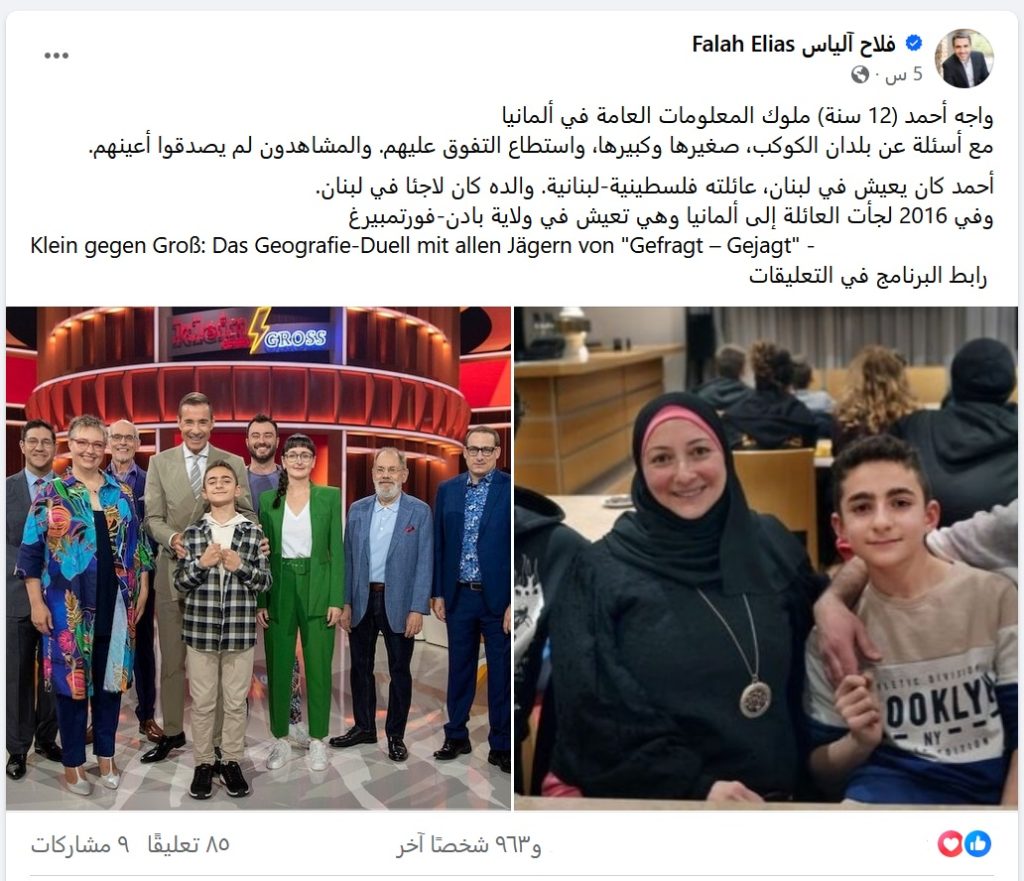 ألمانيا: طفل لبناني فلسطيني يدهش الجميع بمعلوماته العامة في برنامج شهير ( فيديو )